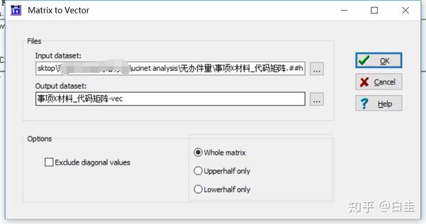 把矩阵选进去,会自动生成vector的,注意下面option那里,【exclude diagonal values】,对角线的值看自己的情况决定要不要。然后点击【OK】