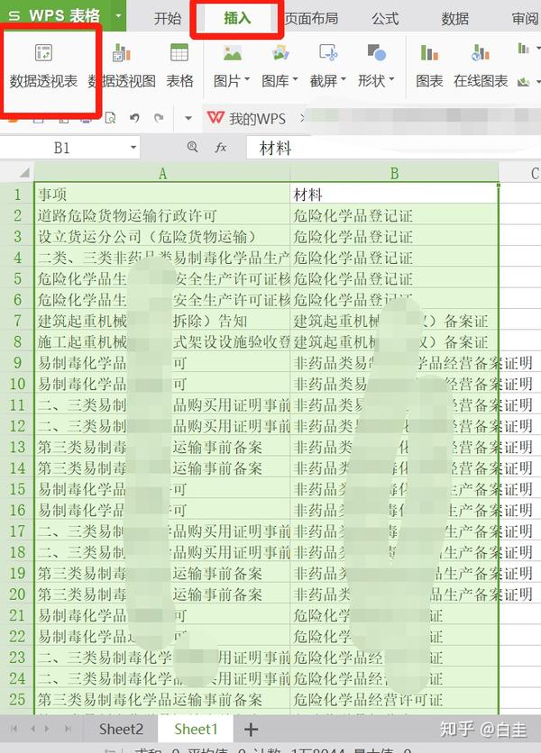 选中这两列数据,然后选择【插入】--【数据透视表】