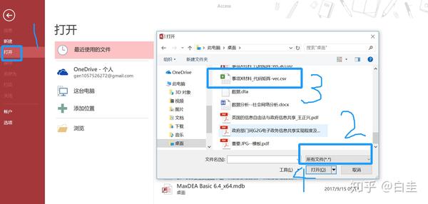 打开access选择【打开】,把文件类型改为【所有文件】,选择刚刚导出来的CSV文件,然后点击【打开】