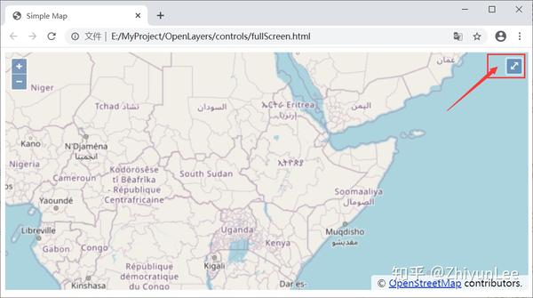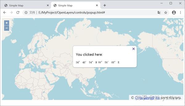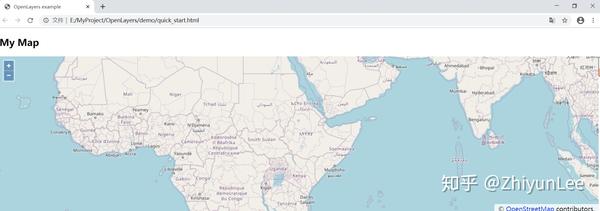 通过浏览器预览效果,这就是OpenLayers的地图: