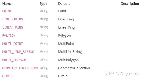 GeoJSON对象必须由一个名字为”type”的成员。这个成员的值是由GeoJSON对象的类型所确定的字符串。 type成员的值必须是下面之一: * “Point”, “MultiPoint”, “LineString”, “MultiLineString”, “Polygon”, “MultiPolygon”, “GeometryCollection”, “Feature”, 或者 “FeatureCollection”。这儿type成员值必须如这儿所示。