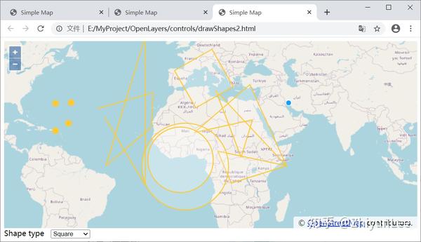 这个示例展示了初始化ol.interaction.Draw对象时设置的三个参数: