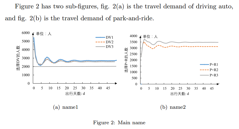 Figure \ref{Fig.main} has two sub-figures, fig. \ref{Fig.main}\ref{Fig.sub.1} is the travel demand of driving auto, and fig. \ref{Fig.main}\ref{Fig.sub.2} is the travel demand of park-and-ride.
