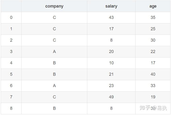 如果想对针对不同的列求不同的值,比如要计算不同公司员工的平均年龄以及薪水的中位数,可以利用字典进行聚合操作的指定:
