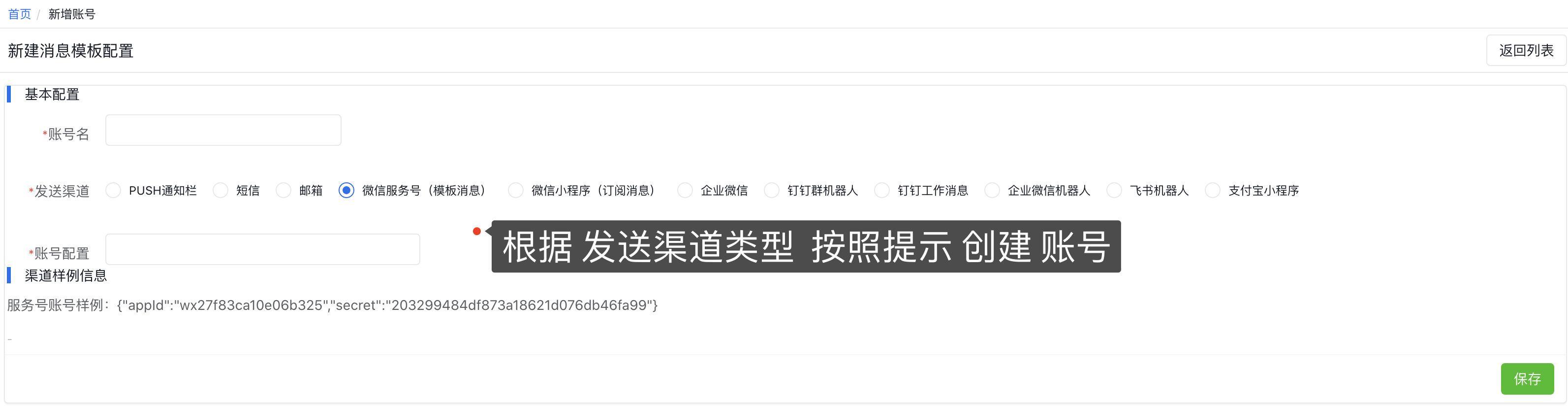 1 、创建需要发送的渠道账号