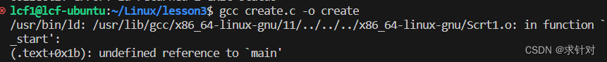 此时create.c文件报错,根据错误提示显示main函数出现问题,但检查后发现没任何语法错误,放到其它linux系统上也可以跑,真让人百思不得其解。。。。。。