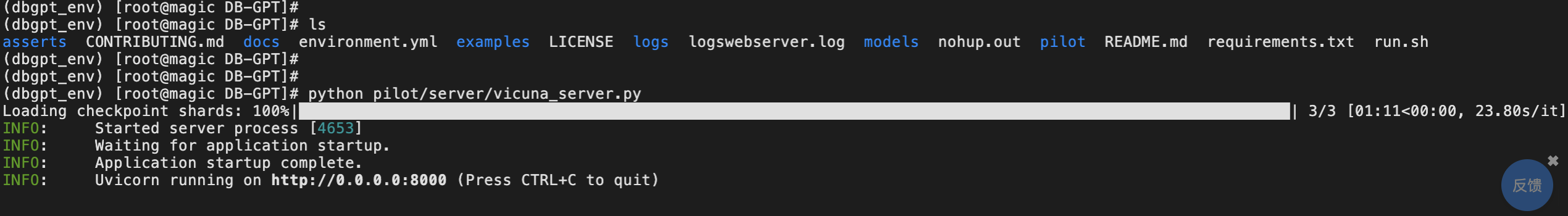 好了,到这里我们就可以访问我们的服务了。如果你需要在本地启动代码,远程连接到阿里云的服务器,只需要在阿里云启动一个后端服务,前端服务本地启动即可。 需要注意要修改本地服务的VICUNA_MODEL_SERVER IP为你的阿里云IP。 然后在本地只启动前端服务即可: