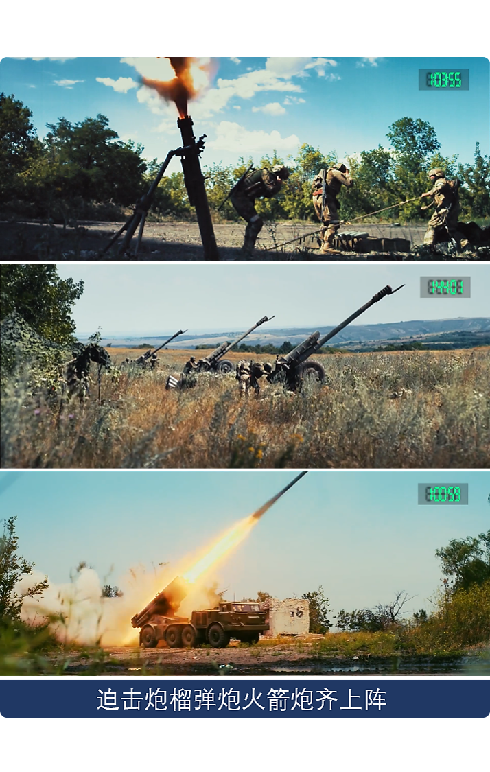 影片中迫击炮、榴弹炮和火箭炮也轮番上阵,感觉很可惜的是这些炮火打击还只限于使用无人机先行侦查,然后再依靠人工网络计算定位并传输数据给前方炮位的方式进行,远不够智能化。影片中让俄军榴弹炮组轻松跑掉,就是这种人工计算延时误差造成的结果。如果换成“海马斯”精确制导炮弹,估计那3个榴弹炮组是很难走脱的。