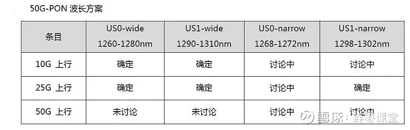 目前50G下行光接口技术规格仍在讨论中,50G上行已基本确定。
