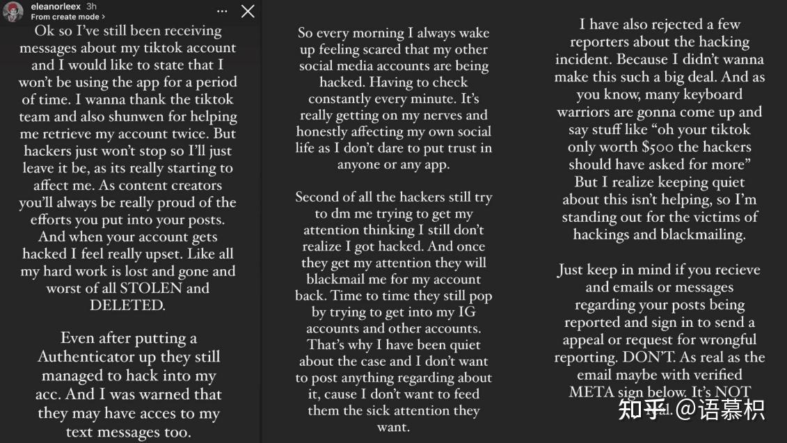 李凯馨TikTok账号遭黑客侵入勒索,让她“每天起床都害怕其他社媒账号被盗”,她表示已经报警。