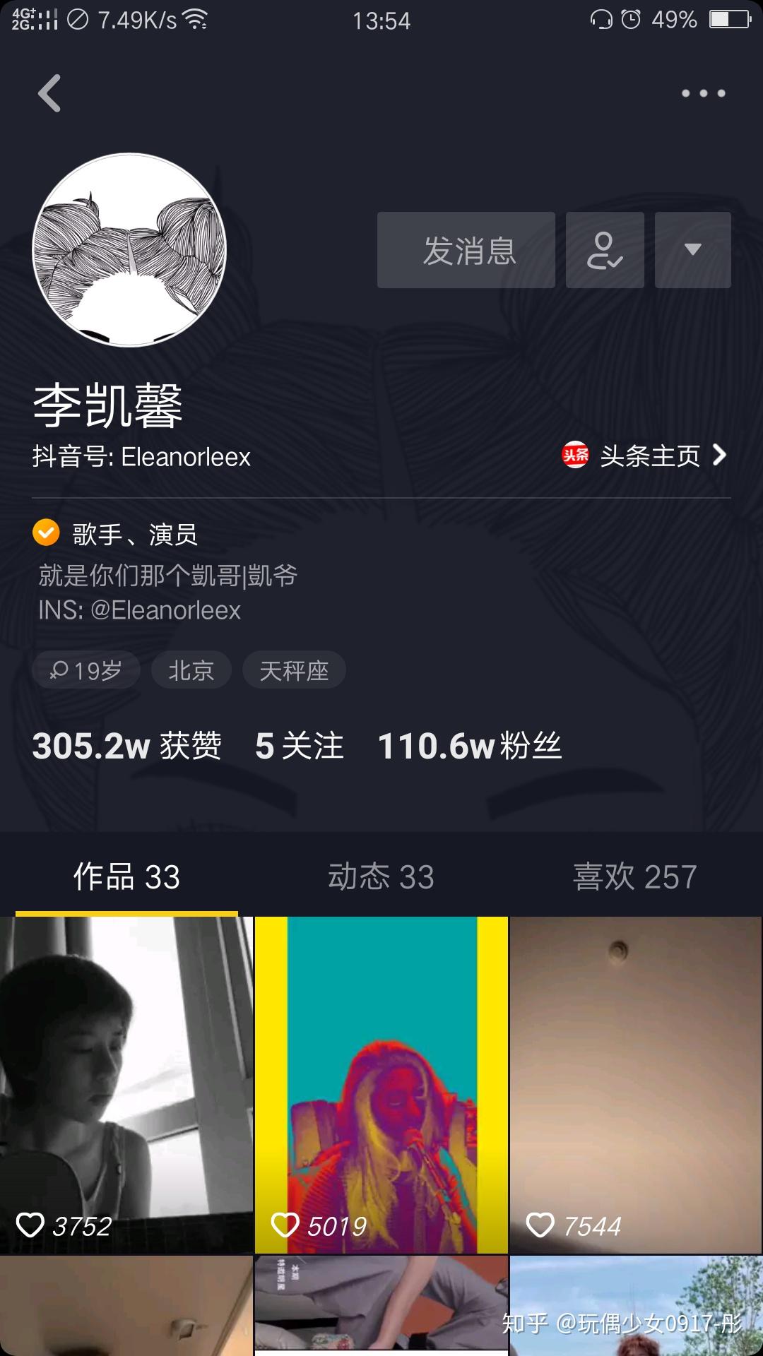 小姐姐会在抖音发一些自己创作的歌的视频