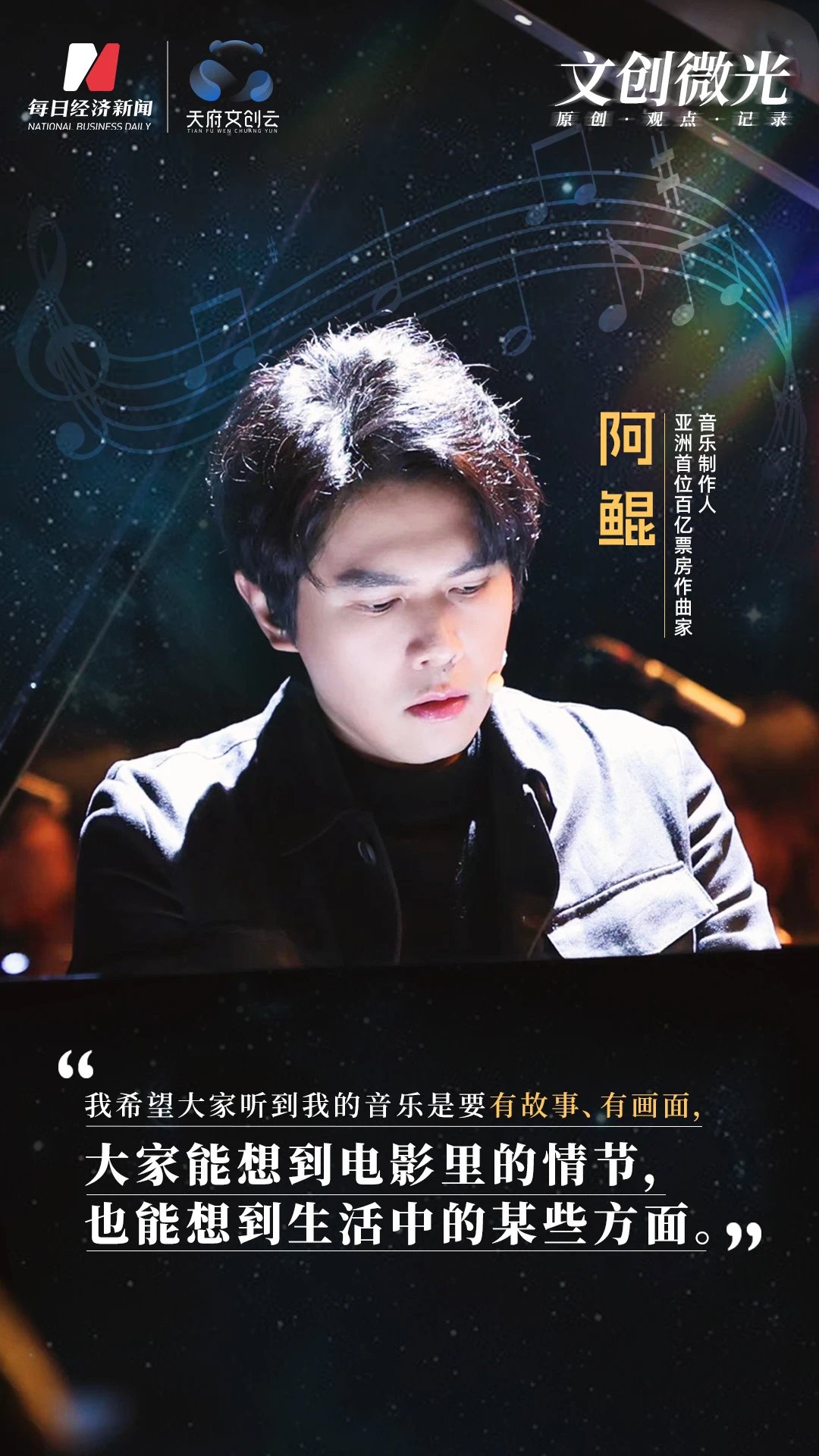 本期《文创微光》栏目,每日经济新闻·天府文创云与你一起走进这位亚洲首位百亿票房作曲家、音乐制作人阿鲲,拆开他的音乐魔盒。