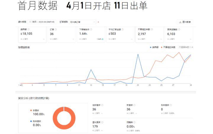 去年12月份,通过蒋晖老师了解到虾皮,觉得是个机会开始加入。今年4月份正式开店,虽然错过了新手扶持政策,但是由于规划得认真,开店第十天就已经出单。 4月份月销1.8万台币,5月份日均9单,月销12万台币。6月份日均12单,月销14.5万台币。(仅代表本人收益)