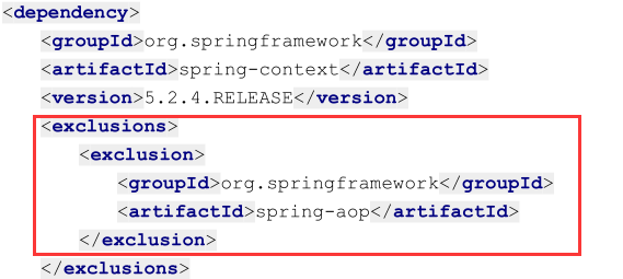 exclusions: 用来排除传递性依赖 其中可配置多个 exclusion 标签,每个 exclusion 标签