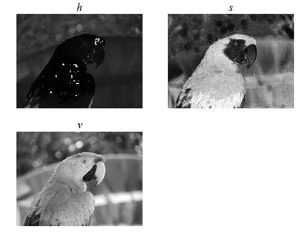 图1-17 从RGB颜色空间转换为HSV颜色空间的鹦鹉图像