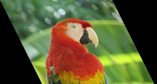 如下代码所示的是用shear(剪切)变换矩阵变换输入图像时得到的输出图像。transform()函数中的数据参数是一个六元组( a , b , c , d , e , f ),其中包含来自仿射变换矩阵(affine transform matrix)的前两行。对于输出图像中的每个像素( x , y ),新值取自输入图像中的位置( ax + by + c , dx + ey + f ),该位置四舍五入为最接近的像素。transform()函数可用于缩放、平移、旋转和剪切原始图像。