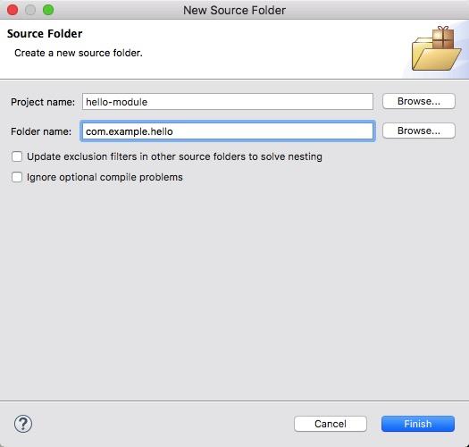 创建模块文件夹,根据非强制的约定,模块文件夹的名称和模块的名称相同。因为需要编译模块,所以可以直接将模块文件夹创建为Eclipse的source folder。