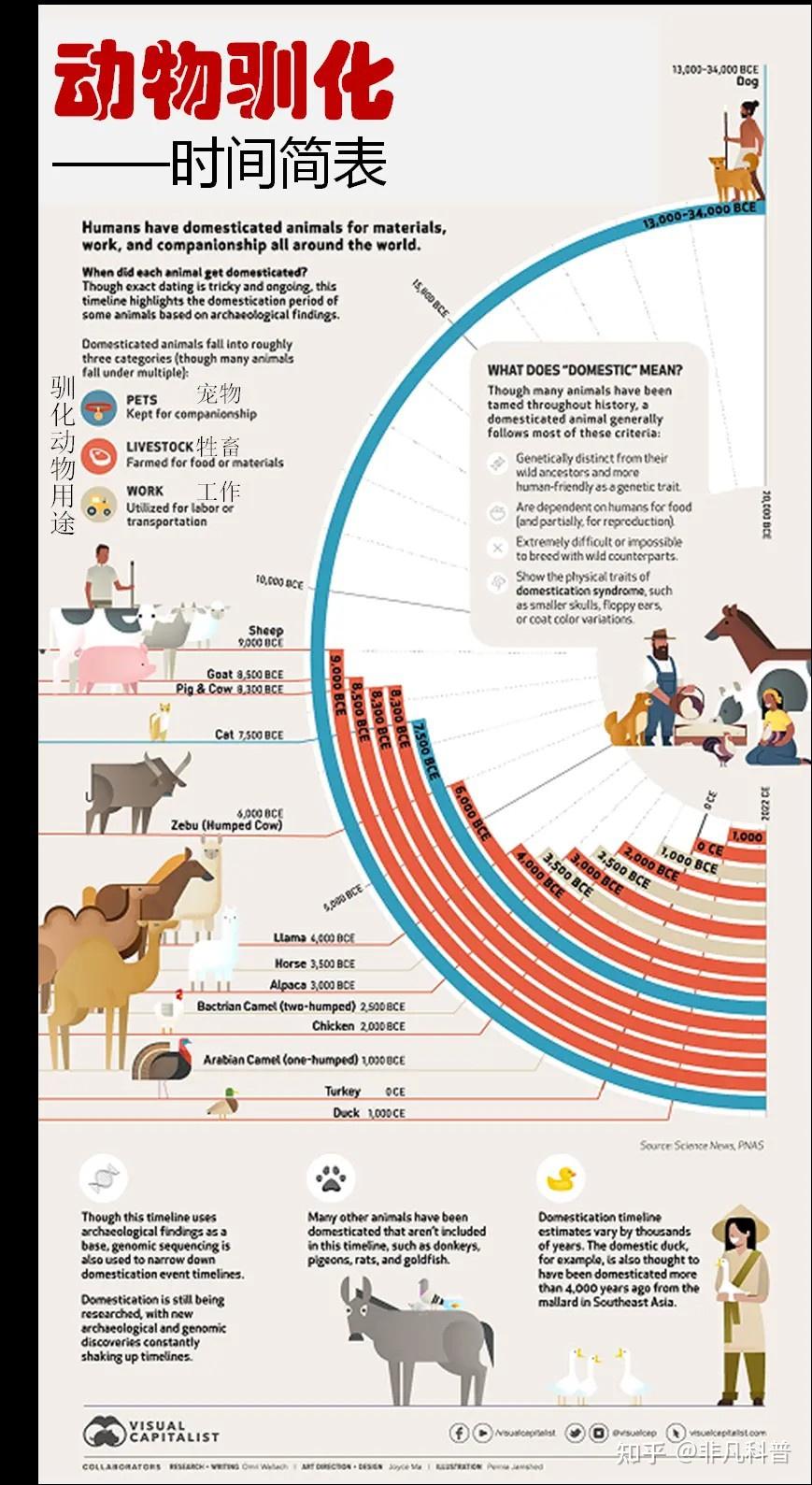 人类什么时候开始驯化动物的,为什么? 根据考古发现,这条时间轴突出了15种不同动物的驯化时期。