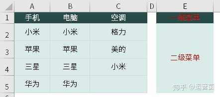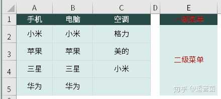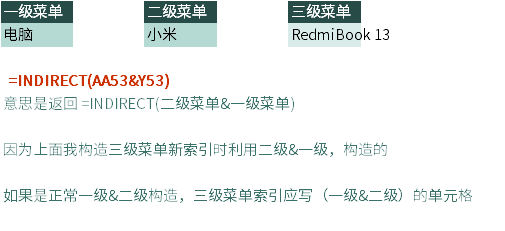 公式:=indirect($g$3)中的G3为一级菜单所在的单元格地址。