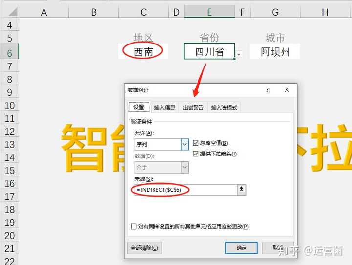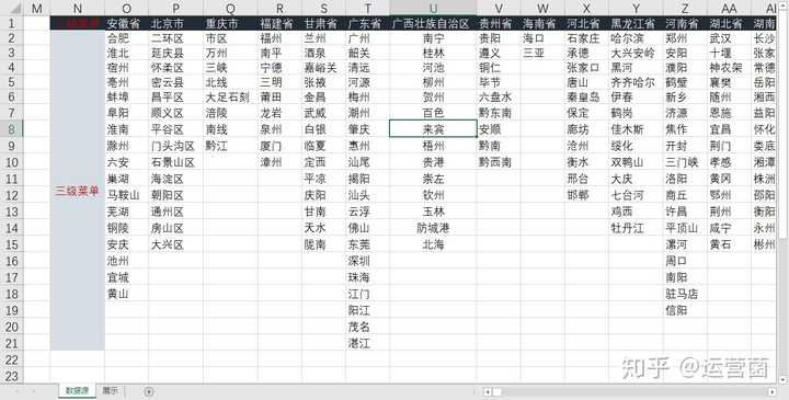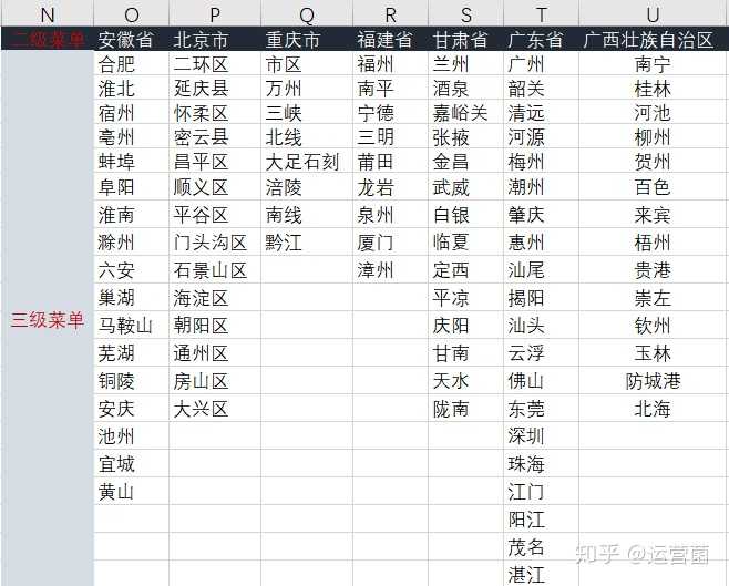 EXCEL怎么制作下拉菜单带条件那种,比如第一层选择某个省,下一列就会自动匹配对应的市。看下面?
