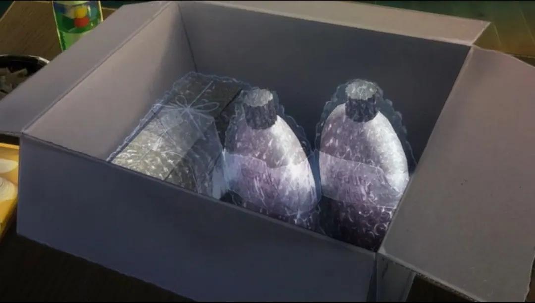 箱子里装着两大瓶看起来很像劣质洗发水的液体。