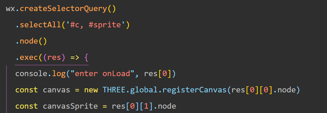 这是wxml中定义的canvas,前面还定义了一个webgl类型 id为c 的canvas用于THREE