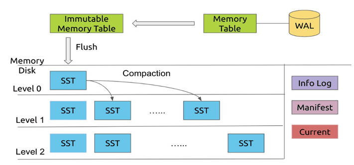 对海量存储集群而言,LSM树也是作为B+树的替代方案而产生。当今很多主流DB都使用了LSM树的存储模型,包括LevelDB,HBase,Google BigTable,Cassandra,InfluxDB, RocksDB等。LSM树通过尽可能减少写磁盘次数,实际落地存储的数据按key划分,形成有序的不同文件;结合其“先内存更新后合并落盘”的机制,尽量达到顺序写磁盘,尽可能减少随机写;对于读则需合并磁盘已有历史数据和当前未落盘的驻于内存的更新。LSM树存储支持有序增删改查,写速度大幅提高,但随机读取数据时效率低。