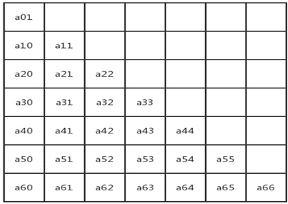 a[i][j]=a[0][0] + (i* (i+1) /2+j) *size;