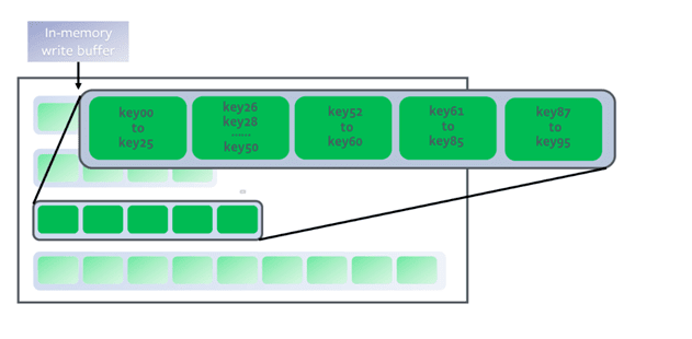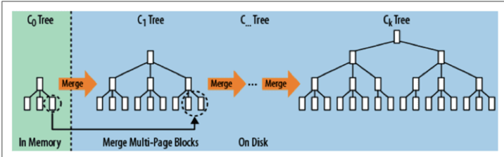 主流的NoSQL数据库则使用日志结构合并树(Log-structured Merge Tree)来组织数据。LSM 树存储引擎和B树一样,支持增、删、改、随机读取以及顺序扫描。通过批量转储技术规避磁盘随机写入问题,极大地改善了磁盘的IO性能,被广泛应用于后台存储系统,如Google Big table、Level DB,Facebook Cassandra系统,开源的HBase,Rocks dB等等。
