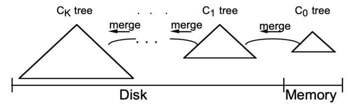 数据库的数据大多存储在磁盘上,无论是机械硬盘还是固态硬盘(SSD),对磁盘数据的顺序读写速度都远高于随机读写。大量的随机写,导致B树在数据很大时,出现大量磁盘IO,速度越来越慢,基于B树的索引结构是违背上述磁盘基本特点的—需较多的磁盘随机读写。于是,基于日志结构的新型索引结构方法应运而生,主要思想是将磁盘看作一个大的日志,每次都将新的数据及其索引结构添加到日志的最末端,以实现对磁盘的顺序操作,从而提高索引性能。