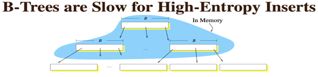 - 如果写入的数据比较离散,那么寻找写入位置时,子节点有很大可能性不会在内存中,最终产生大量随机写,性能下降。下图说明了这一点。