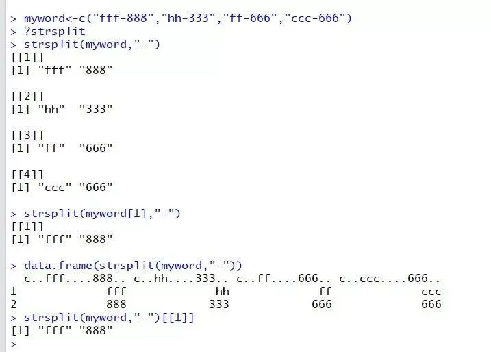 strsplit函数分割之后,输出一个与输入对象等长的列表,如需提取分割后的两列则需要自己构造循环。