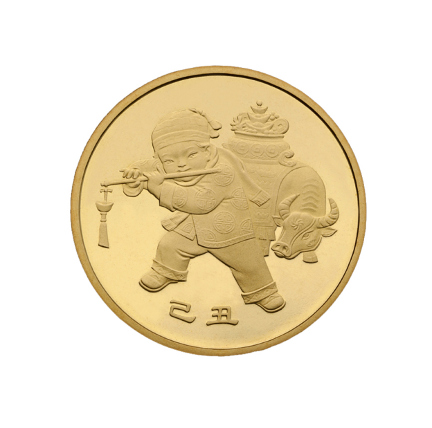 2009年的牛年生肖纪念币,图案为一个穿中国传统服饰的小男孩在吹牧笛,背景为金牛献宝。发行量3000万,当前市场参考价12元。