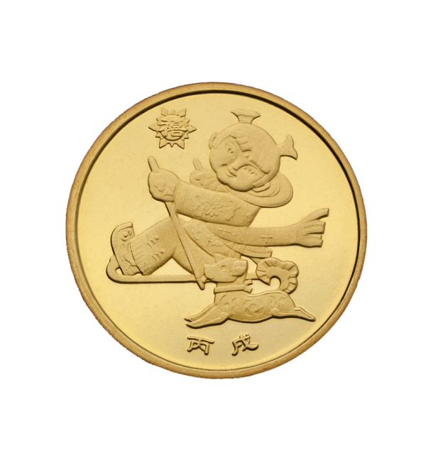 2006年的狗年生肖纪念币,图案为身穿中国传统服饰的儿童与狗嬉戏。发行量1000万,当前市场参考价49元。