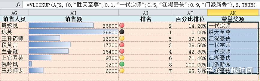 统计排名是为了什么呢?当然是为了更直观地展示每个人的销售情况并确定荣誉,那么今天的内容就是让每个人的销售状态更直观,同时确定每个人的荣誉。涉及应用条件格式、PERCENTRANK.INC函数百分比排位、Vlookup函数近似查询自动分级等内容。
