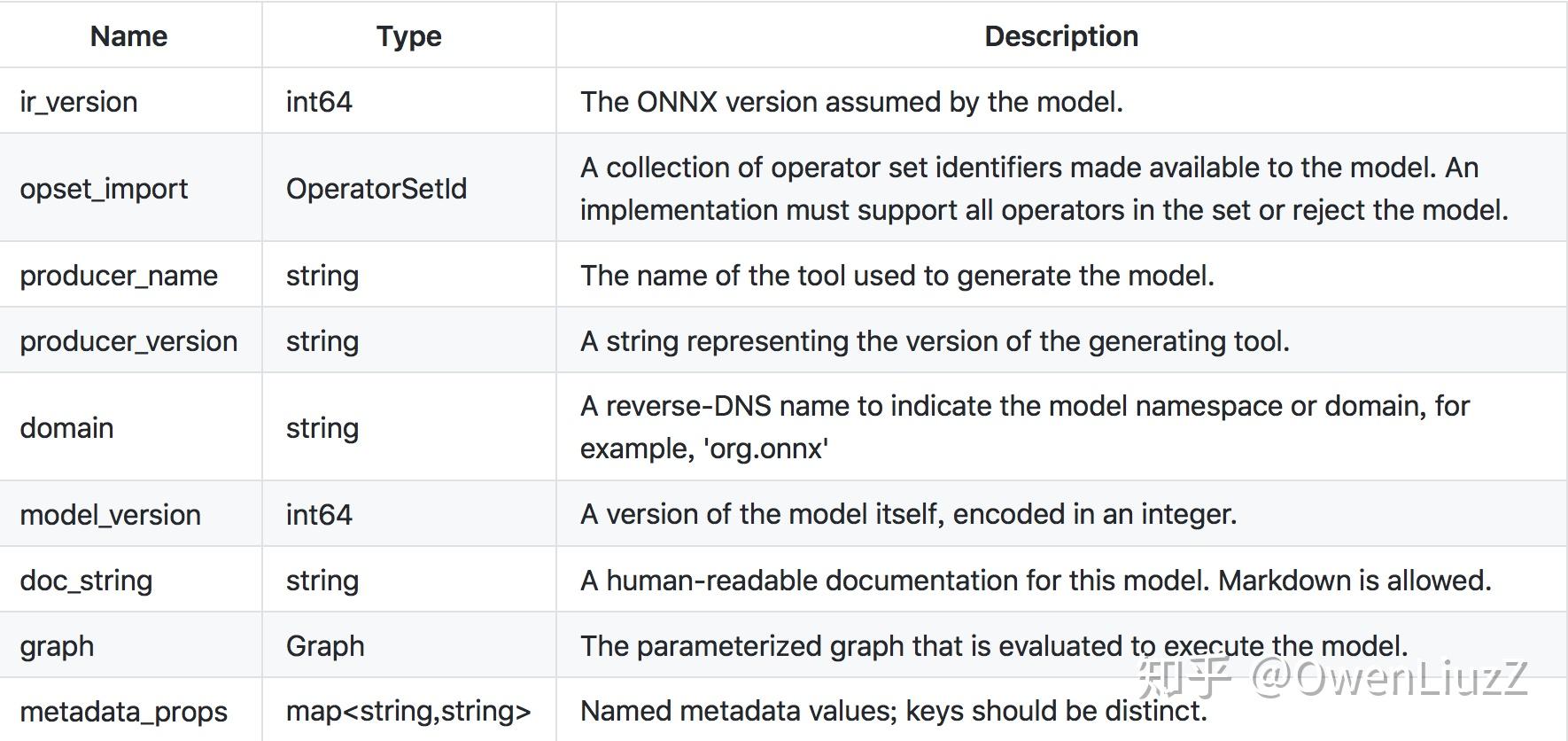 模型结构的主要目的是将元数据(meta data)与图形(graph)相关联,图形包含所有可执行元素。 首先,读取模型文件时使用元数据,为实现提供所需的信息,以确定它是否能够:执行模型,生成日志消息,错误报告等功能。此外元数据对工具很有用,例如IDE和模型库,它需要它来告知用户给定模型的目的和特征。