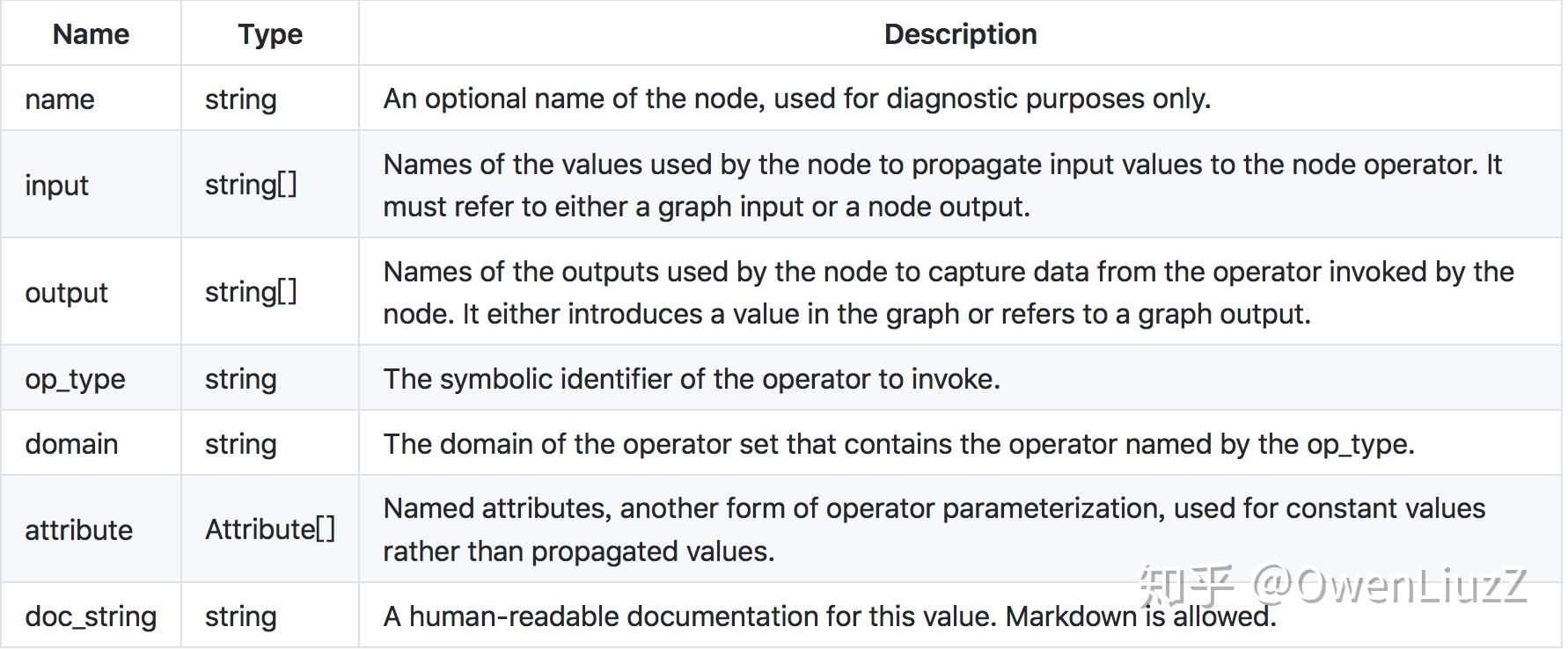 计算节点由名称,它调用的运算符的名称,命名输入列表,命名输出列表和属性列表组成。输入和输出在位置上与operator输入和输出相关联。 属性按名称与运算符属性相关联。