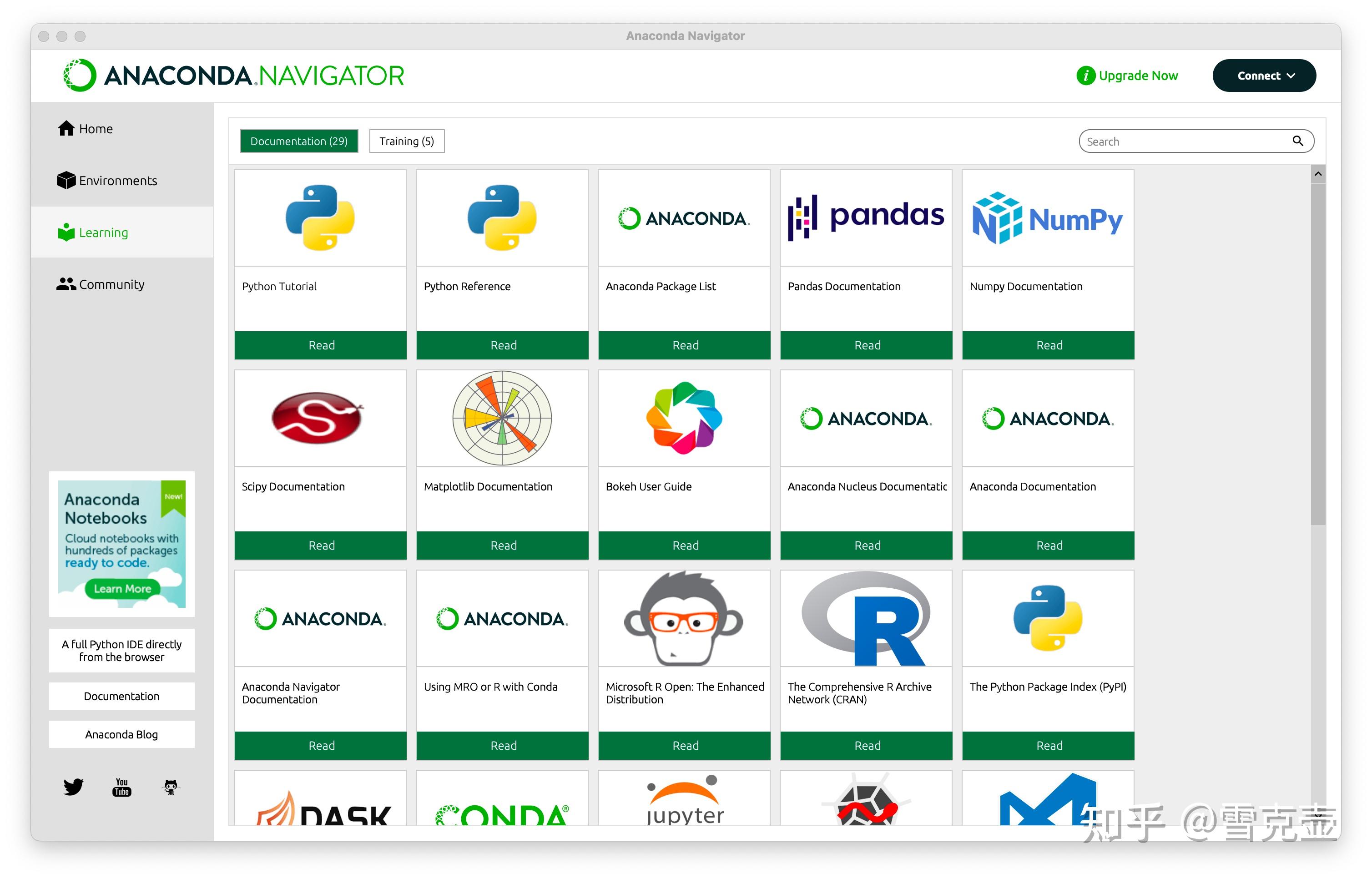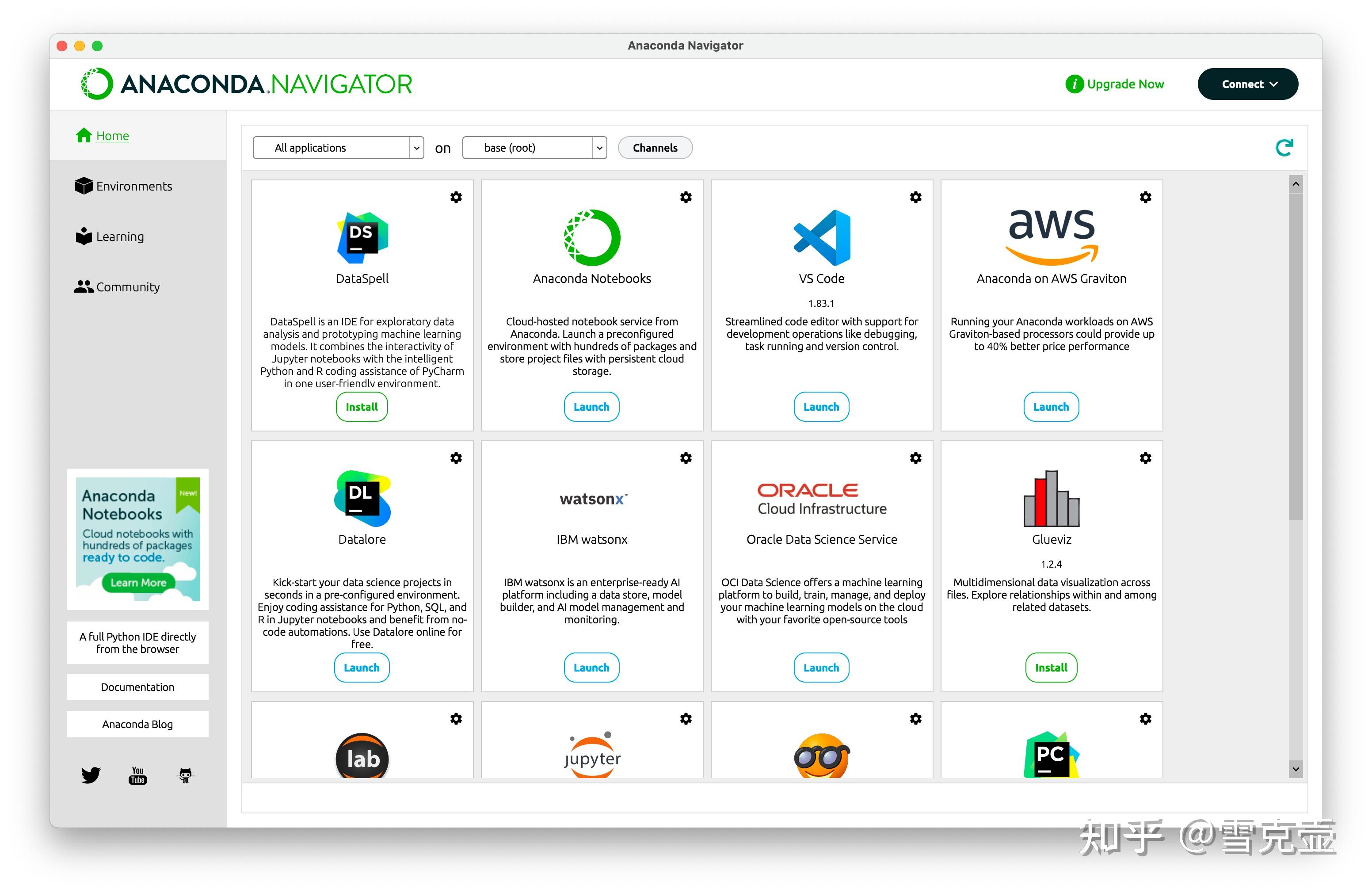 下载后按指引一路安装即可。安装完成后,打开图标,可进入到Anaconda导览界面。简答介绍一下。