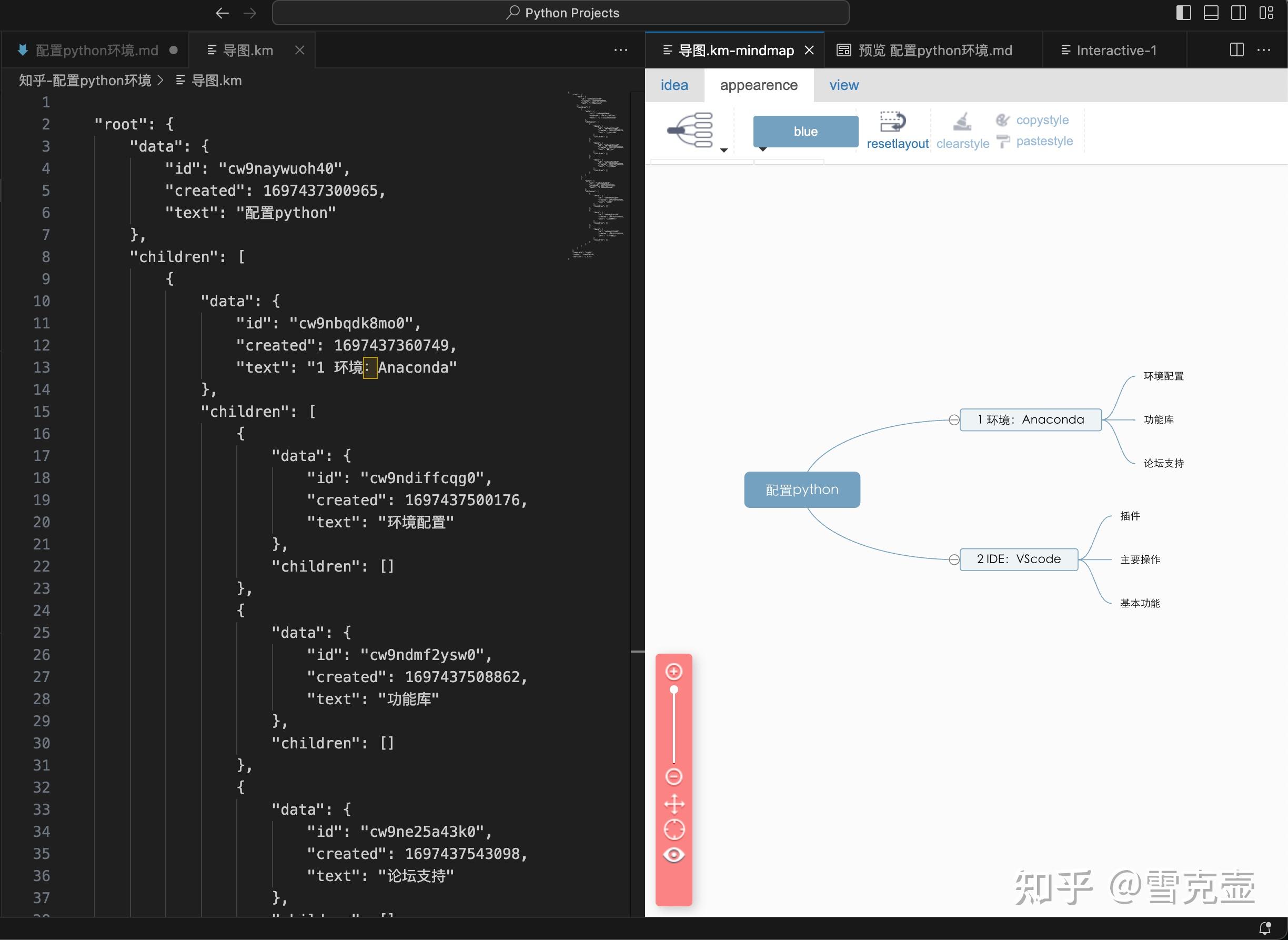 利用此插件可以在VScode中绘制思维导图,界面极简,风格多样。可以直接在交互界面编辑,操作方法与Xmind差不多。也可利用代码实现,需要有json基础。