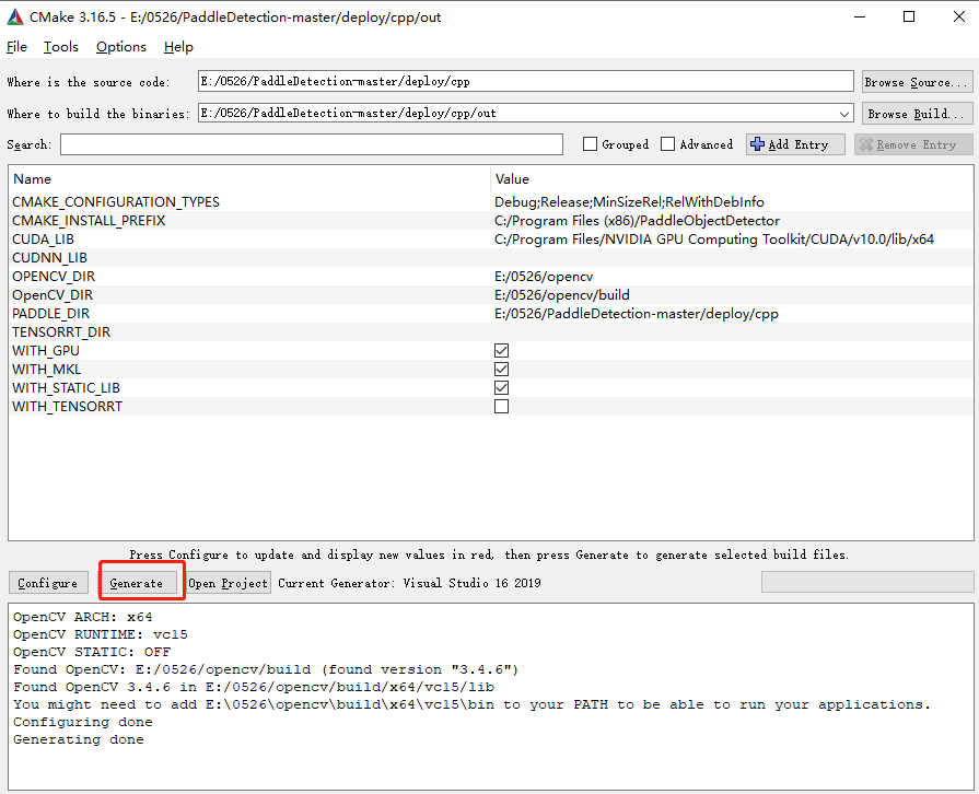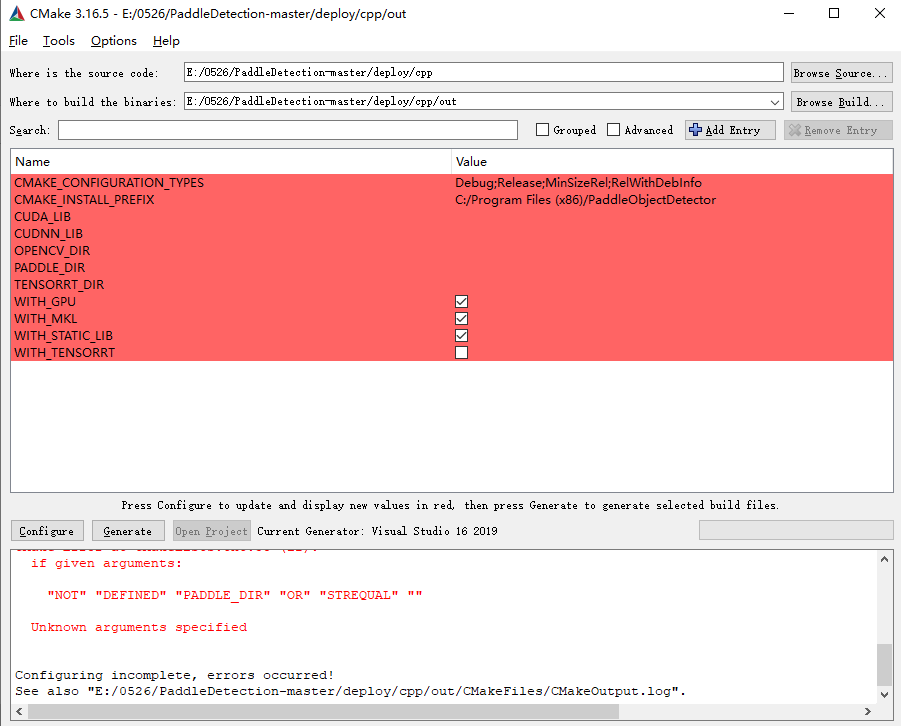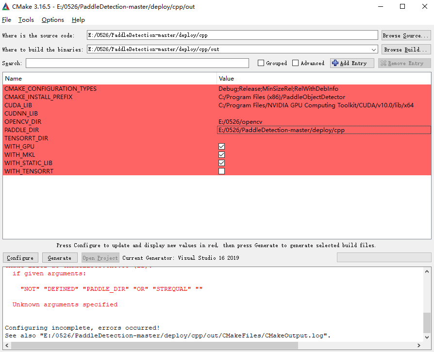 五、根据报错进行修改,主要修改cuda_lib、opencv、paddle_dir路径