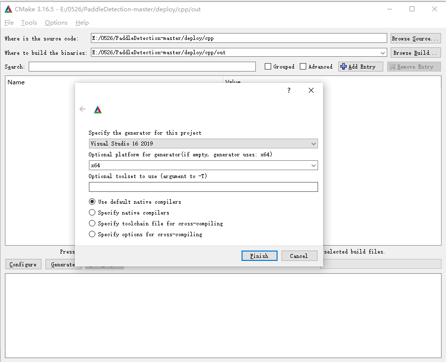 四、点击config,选择vs2019 X64选项后,点击Generate
