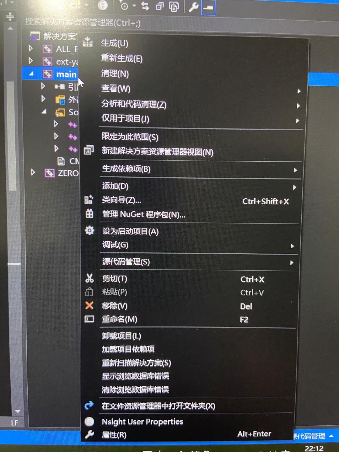 八、针对“main”项目进行“重新生成”。同时一定要将模式配置成为Release
