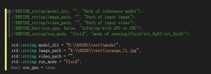 Ps#####此时此刻进行预测的模型是按照《系列文章 如何适用PaddleDetection实现一完整的项目(一)》中export.py文件形式导出“__model__”和“__params__”的形式,但是在后续paddle的升级过程中,export.py文件不仅仅会导出“__model__”和“__params__”,还会导出一个infer_cfg.yml的文件。作者在这个过程中,是使用PaddleDetection-release0.3版本进行导出的,因为作者之前安装的paddle版本是1.7的,而目前的master分支是必须使用paddle2.0版本的。因此小伙伴们需要注意这个问题。