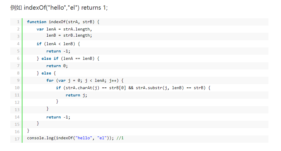 3.请实现javascript中的indexOf功能,判断一个字符串a中是否包含另一个字符串b。