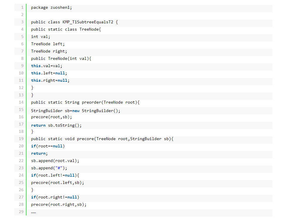 把一棵树序列化为字符串(字符数组) 如果str2是str1的子串 则T2也是T1的子树。