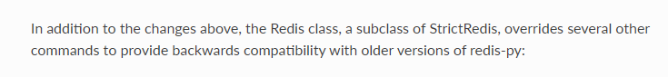 --这是官方解释,Redis是StrictRedis子类,适用于较早版本redis