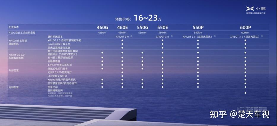 小鹏P5已经于7月17日正式开启预售,补贴后预售价为16-23万元,新车预计在9月份正式上市,10月底开启交付。在车型配置上,小鹏P5共有460G、460E、550G、550E、550P、600P六种配置版本,提供星云白、天青绿、星湖灰、星辰红、星河紫、暗夜黑等六种外观颜色,满足鹏友们对于个性的追求。目前通过小鹏汽车APP、官网、微信小程序等渠道,用户以5000元意向金抢先预订小鹏P5,可享受意向金翻倍、终身用电无忧礼包、上市礼包预先锁定、优先提车权、万元专属福利等五大预售权益。