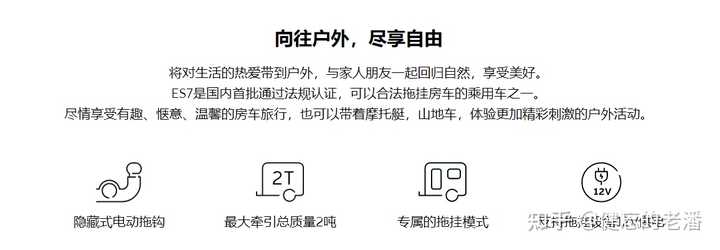 另外多说一点,但CLTC 450km续航的ES7真的能拖着房车带你Glamping???450*0.75(实际)*0.5(拖挂满载)=168km,200km不到的实际续航,估计开到一半露营得改徒步了。这些实际使用上的“缺憾”我想蔚来的产品经理们应该都是清楚的,但换个角度考虑下,从体系化效率角度来说,作为正向研发的Global Car,既然要满足欧洲法规(对于ES7拖挂能力1.8吨以上)拖挂不得不做,那结合国内兴起的Glamping文化,搞个卖点也未尝不可。