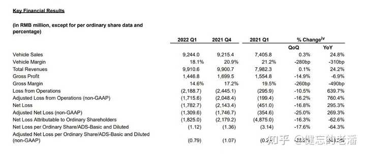 在蔚来Q1电话财报内容中,我们也发现,1万的涨幅对其全系产品毛利的负向影响:2022年一季度,公司毛利率14.6%,而就同比和环比而言,这一指标分别为19.5%和17.2%, 不难看出。原材料上涨对于蔚来营收冲击还是很明显的 。