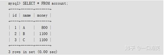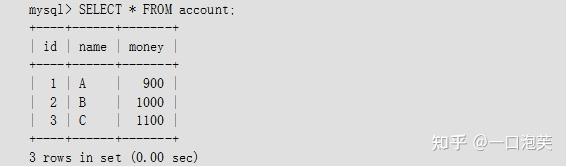 以上执行结果证明账户A成功给账户C转账100元,然后通过客户端A查看account表中的数据。